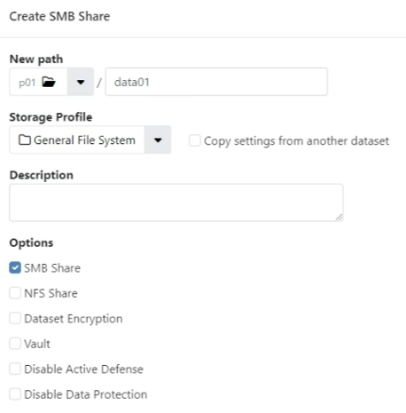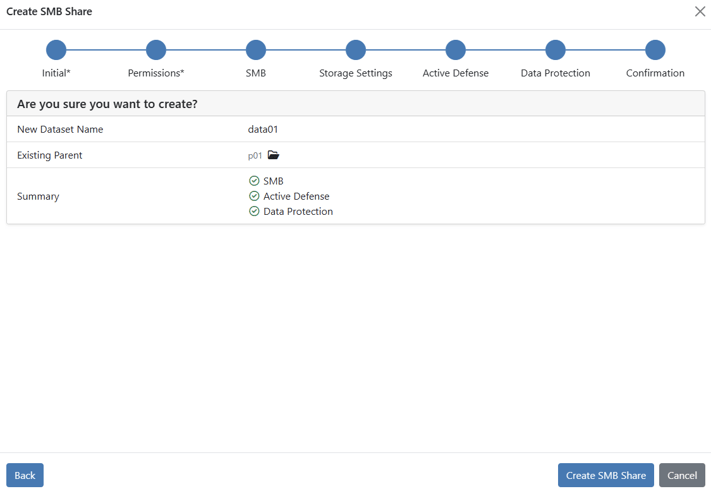 11. Name the new SMB share; the other settings can remain as the default. Click Next.
