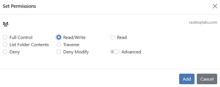 - Using the search box, search for a username or group to assign permissions. Once selected your choice is highlighted, select Next.